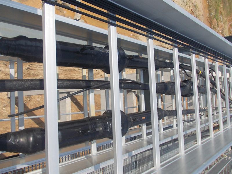 終端應(yīng)力錐采用三元乙丙橡膠(EPDM)高壓注橡成型,由彈簧錐托頂緊于環(huán)氧套管內(nèi)錐形壁上,克服了應(yīng)力錐由于材料老化帶來的彈性松弛、應(yīng)力錐與電纜外半導(dǎo)電層接觸不良等弊病,以確保終端長期安全穩(wěn)定運(yùn)行;終端為全干式結(jié)構(gòu),杜絕了泄露問題;產(chǎn)品結(jié)構(gòu)緊湊、重量輕、體積小、大大減少了安裝空間;終端與電纜的連接方式為插拔式,安裝簡便,易于維護(hù);插板式GIS終端還適用于電力電纜與變壓器的連接,取消了油/油套管或油/氣套管(象鼻子),節(jié)省了大量空間;短型插拔式GIS終端加裝出線桿后,又適用于與長式GIS終端配套的GIS設(shè)備。